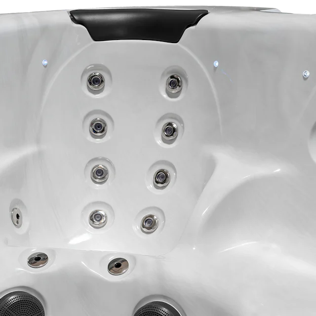 The robust yet elegant look of the stainless steel jet is strategically placed to provide a relaxing hydromassage