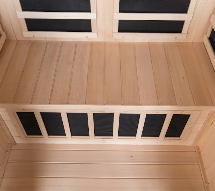 Each Sun & Soul Sauna™ is crafted from quality hemlock timber, adding a touch of style and natural warmth to your home. Known for its smooth finish and durability, spruce creates a cozy, inviting atmosphere for every relaxing session