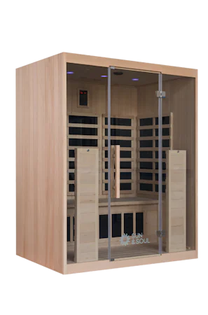 Sun & Soul™ saunas use low-EMF carbon far-infrared heaters for deep, comfortable warmth that promotes intense sweat, relaxation, and overall vitality. Perfect for your wellness journey.